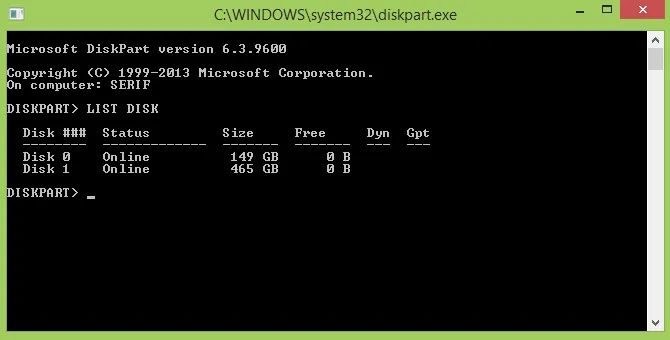 - LIST DISK size disk adı olarak, Disk 0, Disk 1 gibi bilgiler dönecektir. İlgili cihazın hangisi olduğuna çok iyi karar vermeniz gerekiyor çünkü, yanlış bir seçim ile işletim sistemini uçurabilirsiniz. Genel olarak Disk 0, sistemin çalıştığı sabitdisk'i temsil eder fakat bu bilgiye değil, Size olarak nitelendirilen Bellek boyutlarına bakmalısınız.