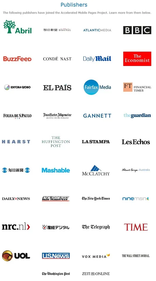 AMP Projesine Destek veren bazı yayıncı kuruluşlar;
