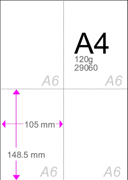 Bir A4 Kağıdını, dört eşit parçaya bölerseniz, A6 boyutunu elde edersiniz.