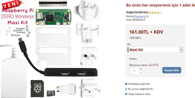 Samm üzerinde Raspberry Pi Zero Maxi Kit Fiyatı KDV dahil fiyatı (189,98 TL)
