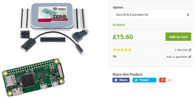 ThePiHut üzerinde Raspberry Pi Zero W + Essentials Kit 15,60£ + Kargo 4£ (Bana Sadece Zero W kargo dahil 65 TL'ye mal oldu. TR'ye oranla 25 TL zarar ettim ve ayrıca 15-20 gün kadar ürünü bekledim.)